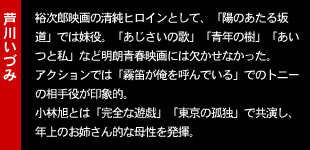 男男っぽいアクション映画には美しく可憐なヒロインが不可欠。 |