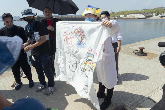 今回公開されたメイキング映像は、快晴の漁港で行われている撮影の現場を激励に訪れた日のもの。
