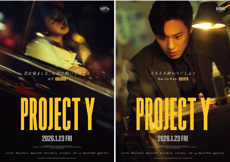 韓国を代表する俳優ハン・ソヒさんとチョン・ジョンソさんがW主演を務め、2026/1/23(金)よりTOHOシネマズ 日比谷ほか全国公開するクライムサスペンス映画『PROJECT Y』(プロジェクト ワイ)のキャラクターポスターが解禁!さらに、ハン・ソヒさんの来日が決定しました!