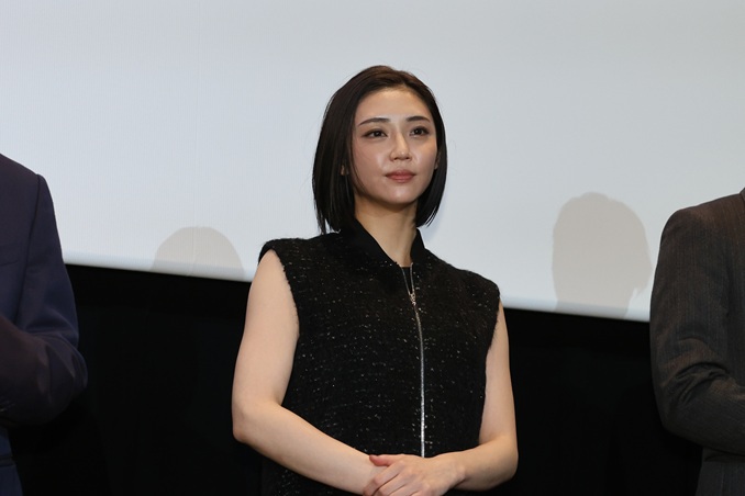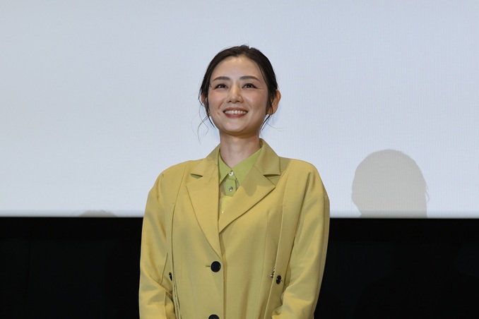 また行平さんの実母である寺島さんは、「いつも娘がお世話になっております。皆さまもありがとうございます」と頭を下げて会場を沸かせると、「今回、バーのママの役なのですが、監督が昔の私のブロマイドを見た時に『この髪型にできますか?』とおっしゃっていただいたので、80年代に流行った聖子ちゃんカットで出ております」とコメント。