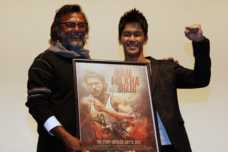 メーラ監督 これは初版のポスターなのですが、それにミルカ・シン本人のサインをもらったものです。「2012年11月28日 愛を込めて―ミルカ・シン」 と書かれています。昨日まで私の家の壁に掛かっていたのですが、今回日本に来ることになりましたので、何か特別な贈り物を・・・と思い、これを持って参りました。